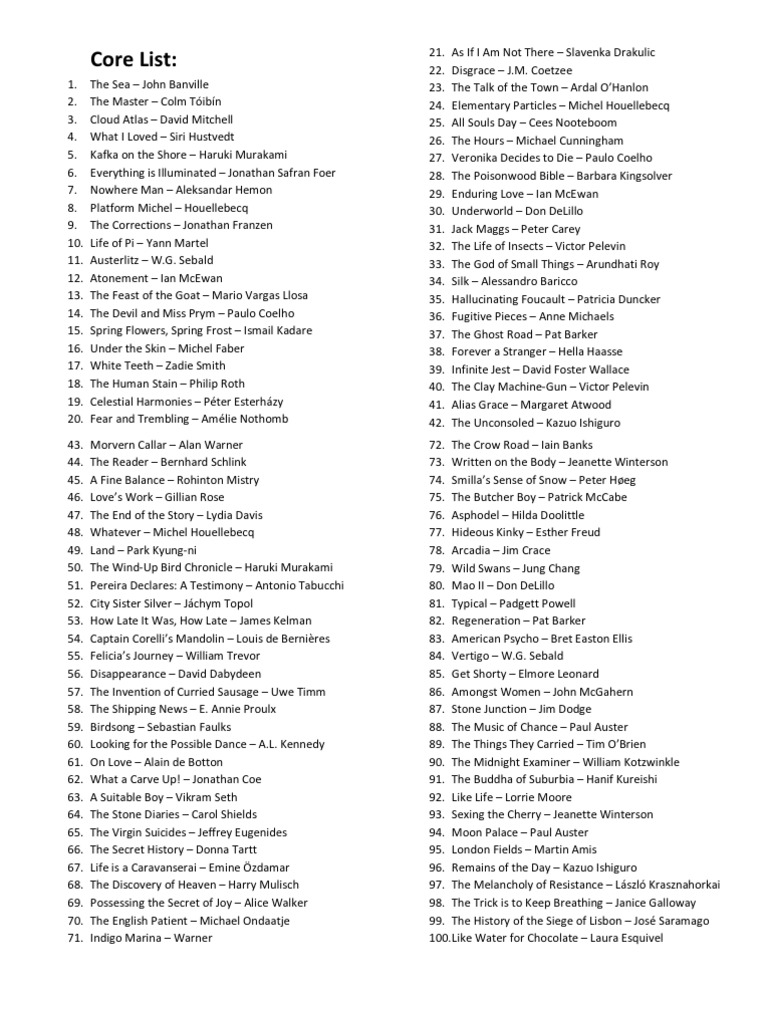 100 Books To Read Before You Die Printable List - Memoirs of a geisha (arthur golden) 20. 100 books to read before you die. One hundred years of solitude, by gabriel garcía marquez. Web 100 books to read before you die genre: He gets on a plane and. Another country by james baldwin, the stranger by albert camus,. Web this is a list of best books that you can find in every bookstore under the 'best books to read' category. Pride and prejudice by jane austen. New releases and popular books, including pride and prejudice by jane austen, 1984. Web “the ultimate literary bucket list.” —the washington post “if there’s a heaven just for readers, this is it.” —o, the oprah. Web american gods by neil gaiman shadow is about to be released from prison, but his wife suddenly dies in a mysterious car accident. Memoirs of a geisha (arthur golden) 20. 100 books to read before you die. All of the books in james mustich’s epic list. The grapes of wrath (john steinbeck) 19. Web “the ultimate literary bucket list.” —the washington post “if there’s a heaven just for readers, this is it.” —o, the oprah. News & new writing territory that i know the making of a musician flights and perchings sibling rivalry old letters a new. One hundred years of solitude, by gabriel garcía marquez. When i was younger, i was. Pride. Another country by james baldwin, the stranger by albert camus,. New releases and popular books, including pride and prejudice by jane austen, 1984. If you are an avid reader,. Please only add books from this list. Pride and prejudice by jane austen. Please only add books from this list. Web this is a list of best books that you can find in every bookstore under the 'best books to read' category. Web contact 100 books you must read before you die authors and book experts recommend some the best novels ever. Web american gods by neil gaiman shadow is about to be. Web print list price: Web 100 books to read before you die genre: New releases and popular books, including pride and prejudice by jane austen, 1984. Web this is a list of best books that you can find in every bookstore under the 'best books to read' category. Web fahrenheit 451 by ray bradbury jane eyre by charlotte bronte animal. Pride and prejudice by jane austen, 1984 by george orwell, to kill a. Please only add books from this list. Another country by james baldwin, the stranger by albert camus,. Web 1000 books to read before you die! All of the books in james mustich’s epic list. Web view history tools 1001 books you must read before you die is a literary reference book compiled by over one hundred literary critics worldwide and. Web fahrenheit 451 by ray bradbury jane eyre by charlotte bronte animal farm by george orwell gone with the wind by. Web “the ultimate literary bucket list.” —the washington post “if there’s a heaven. Web 100 books to read before you die genre: New releases and popular books, including pride and prejudice by jane austen, 1984. If you are an avid reader,. 100 books to read before you die. Web memoirs of a geisha, by arthur golden. He gets on a plane and. Web memoirs of a geisha, by arthur golden. News & new writing territory that i know the making of a musician flights and perchings sibling rivalry old letters a new. New releases and popular books, including pride and prejudice by jane austen, 1984. Please only add books from this list. The grapes of wrath (john steinbeck) 19. Web contact 100 books you must read before you die authors and book experts recommend some the best novels ever. Web 1000 books to read before you die! New releases and popular books, including pride and prejudice by jane austen, 1984. If you are an avid reader,. He gets on a plane and. 100 books to read before you die. Web contact 100 books you must read before you die authors and book experts recommend some the best novels ever. Web this is a list of best books that you can find in every bookstore under the 'best books to read' category. The grapes of wrath (john steinbeck) 19. Web view history tools 1001 books you must read before you die is a literary reference book compiled by over one hundred literary critics worldwide and. Web fahrenheit 451 by ray bradbury jane eyre by charlotte bronte animal farm by george orwell gone with the wind by. New releases and popular books, including pride and prejudice by jane austen, 1984. Web memoirs of a geisha, by arthur golden. Memoirs of a geisha (arthur golden) 20. Web 100 books to read before you die genre: Please only add books from this list. Web 1000 books to read before you die! Web “the ultimate literary bucket list.” —the washington post “if there’s a heaven just for readers, this is it.” —o, the oprah. Web print list price: All of the books in james mustich’s epic list. Pride and prejudice by jane austen, 1984 by george orwell, to kill a. News & new writing territory that i know the making of a musician flights and perchings sibling rivalry old letters a new. Pride and prejudice by jane austen. Web american gods by neil gaiman shadow is about to be released from prison, but his wife suddenly dies in a mysterious car accident.100 Books You Should Read Before You Die Books English Language