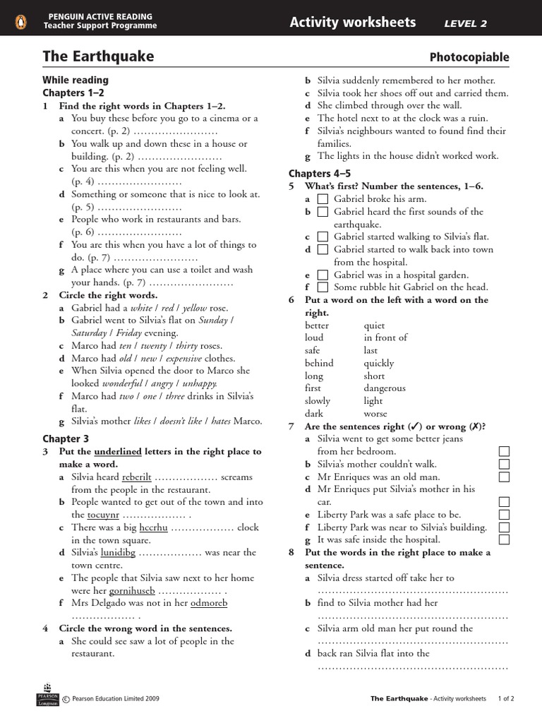 Free Printable Earthquake Worksheets